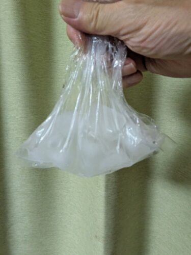 この氷をそのまま使わずに水を入れてやさしい氷にします。